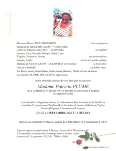 PLUME Patricia (14/01/1961-08/09/2025)