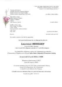 Décés de Madame Laurence Messiaen 05.04.1929-17.04.2026
